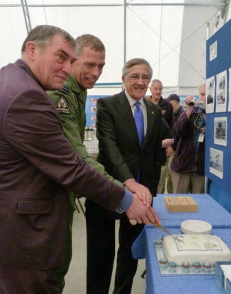 The Boss flew down from RAF MArham to be in attendance for the seeing-off of the cyclists and on arrival it was to find that FAST (Farnborough Air Sciences Trust) had laid on a number of events to commemorate the association that Farnborough has with "Shiny Two" notwithstanding that it was there that No. 2 Sqn RFC was born in 1912. Local dignitaries were in attendance including the MP for Aldershot, Sir Gerald Howarth, and the mayor, Councillor Terry Bridgeman.
