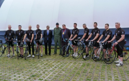 Your Vice-President, Don Nutbrown, and your humble Webmaster (me, Clive Brooks) joined with the Boss, Wg Cdr Jez Holmes and local dignatories to indulge ourselves in the celebrations of seeing the intrepid cyclists off and what follows is a picture story of the story so far.  For; security considerations the exact route and timings of the epic journey are not being published but it is hoped that regular reports on the progress of the team will be posted over the next week so that you can at least join them in spirit.