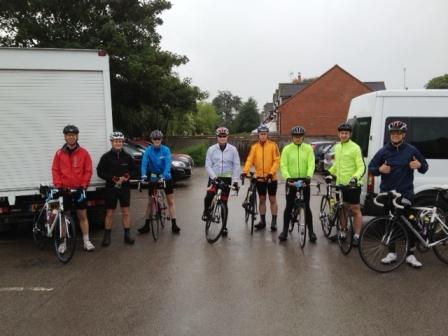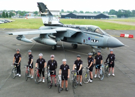 Day 1 saw the team leave Farnborough and with the weather being most unhelpful a soggy 50 miles was completed which saw them to RAF Halton. Following an overnight stay which included being fed and watered (well, not water exactly. We are led to believe a well-earned Beer or two might have been involved) they set off this morning with the prospect of a bit of sunshine to accompany them. Latest report is that although en-route repairs and adjustments were required they have reached their planned destination after having pedalled 93.5 miles.