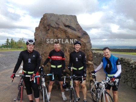 The last 2 days have been tough and definitely challenged all of the cyclists and support team alike. The cyclists today made their way from Otterburn to the Castle in good time finishing the 75+ miles by early afternoon. The hills are now predominantly behind us after one last long ascent out of England and across the border into Scotland. Weather has again been kind but I suspect tomorrow may be different with rain currently forecast.